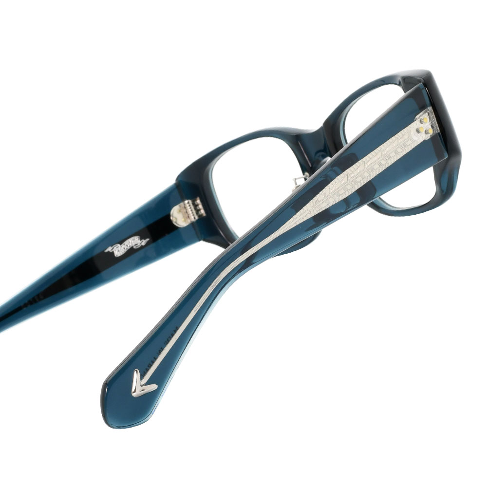 SEDONAやBUFFALOと同様、存在感のある太めのテンプルに、日本製タキロン8ミリアセテートを採用し、巧みな技法で曲智の美しいラインを表現しました。