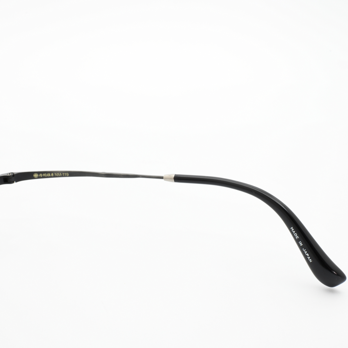 更にリムの両端を全面後面掴みにすることで一山ブリッチの弱点であるフロントの歪みを軽減し、テンプルを0.6mmという薄さにプレスすることによってフロントへの負荷も最小限に抑えました。