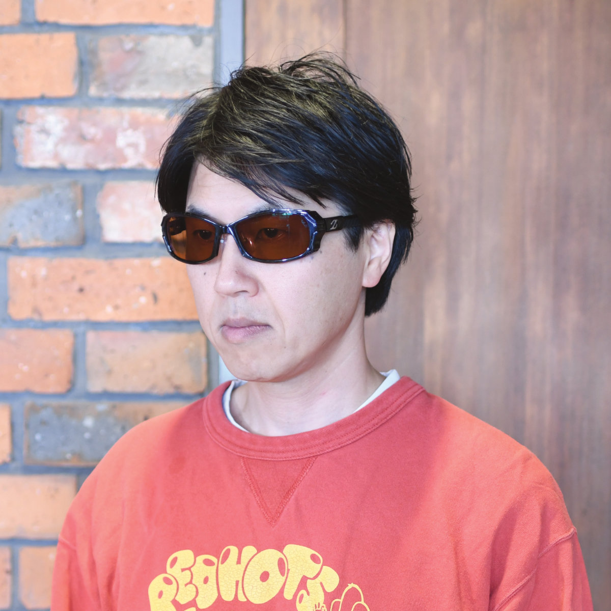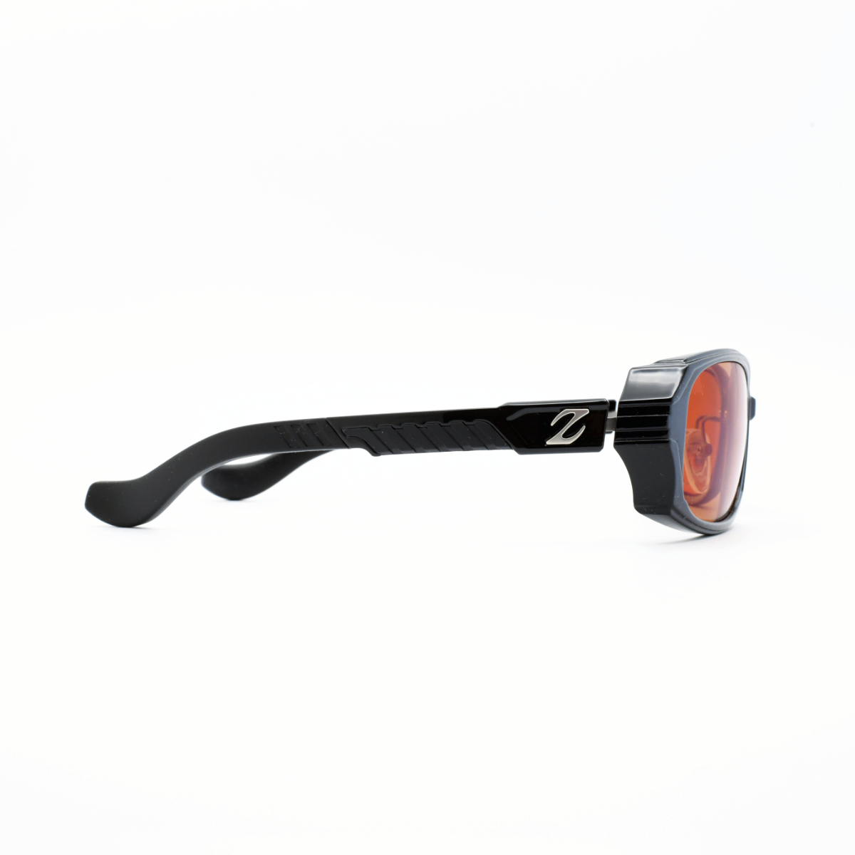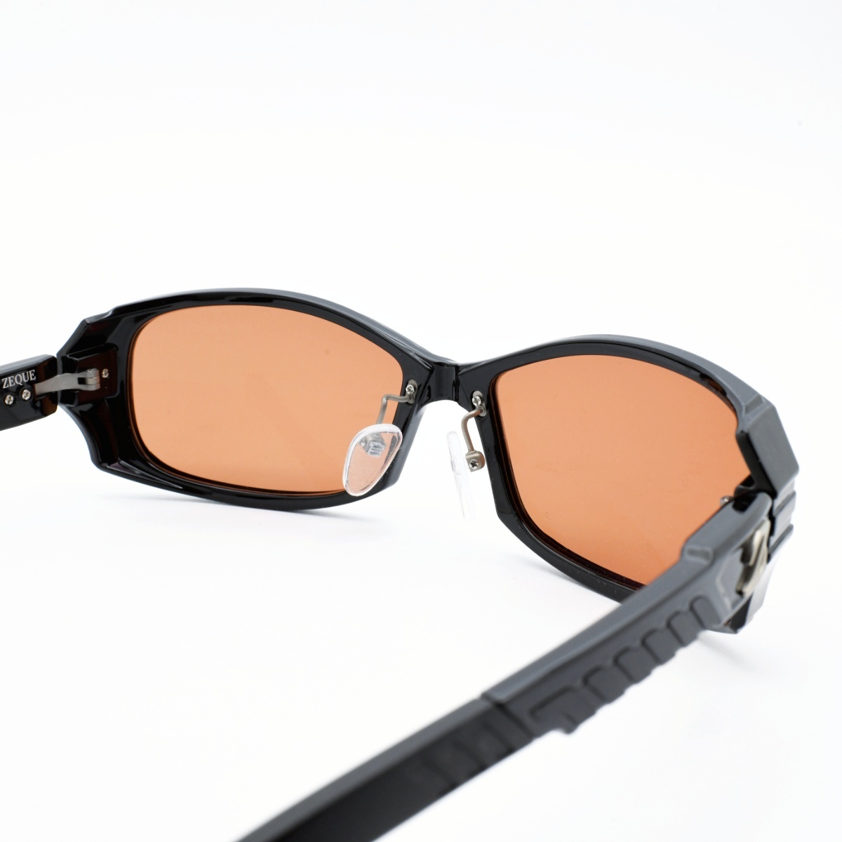 調整可能な厚めのモダンとテンプル中央に配置したエラストマー製パーツ。
