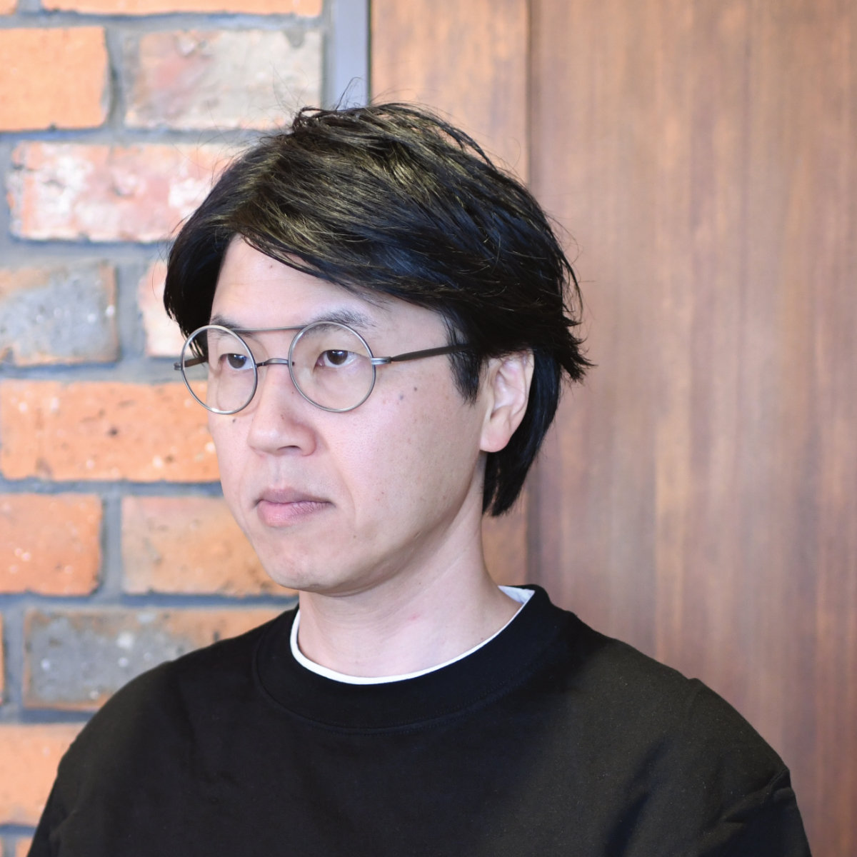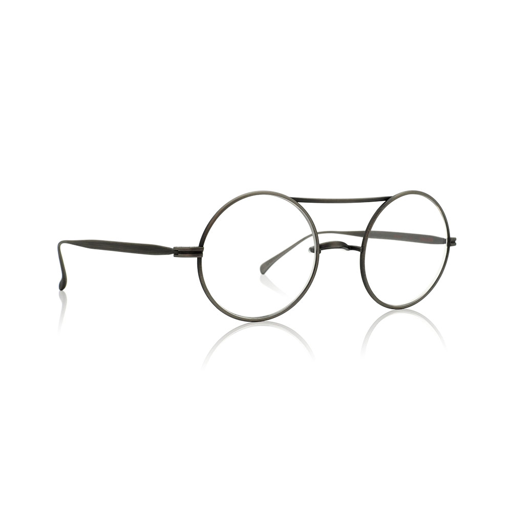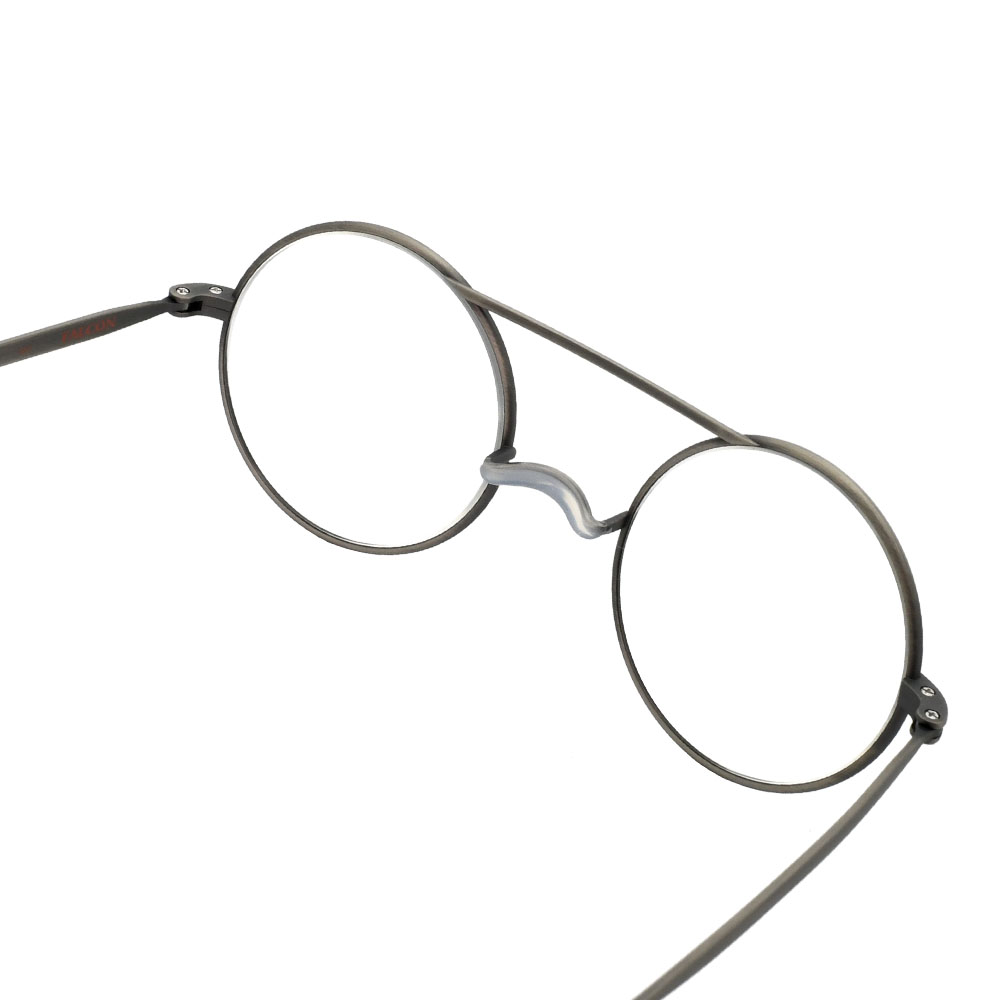 フルチタニウムの無骨なスタイルはそのままに、ツーブリッジのラウンドシェイプはスタイリッシュに洗練。