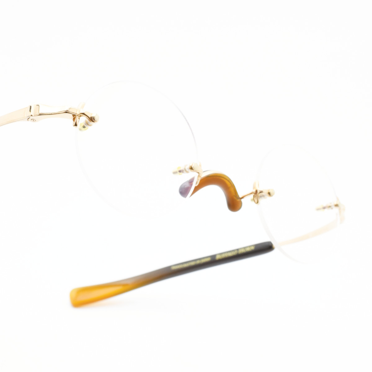 本コレクションでは、フレーム製作を丹羽雅彦が手掛け、テンプルには二代続く鼈甲職人中村甲芸が全工程を手作業にて手がける。