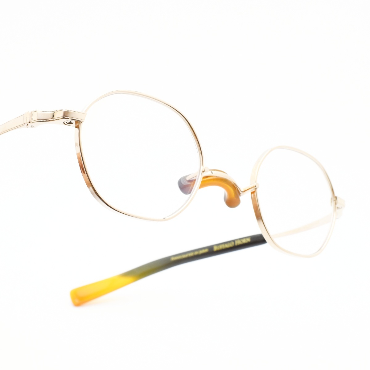 本コレクションでは、フレーム製作を丹羽雅彦が手掛け、テンプルには二代続く鼈甲職人中村甲芸が全工程を手作業にて手がける。