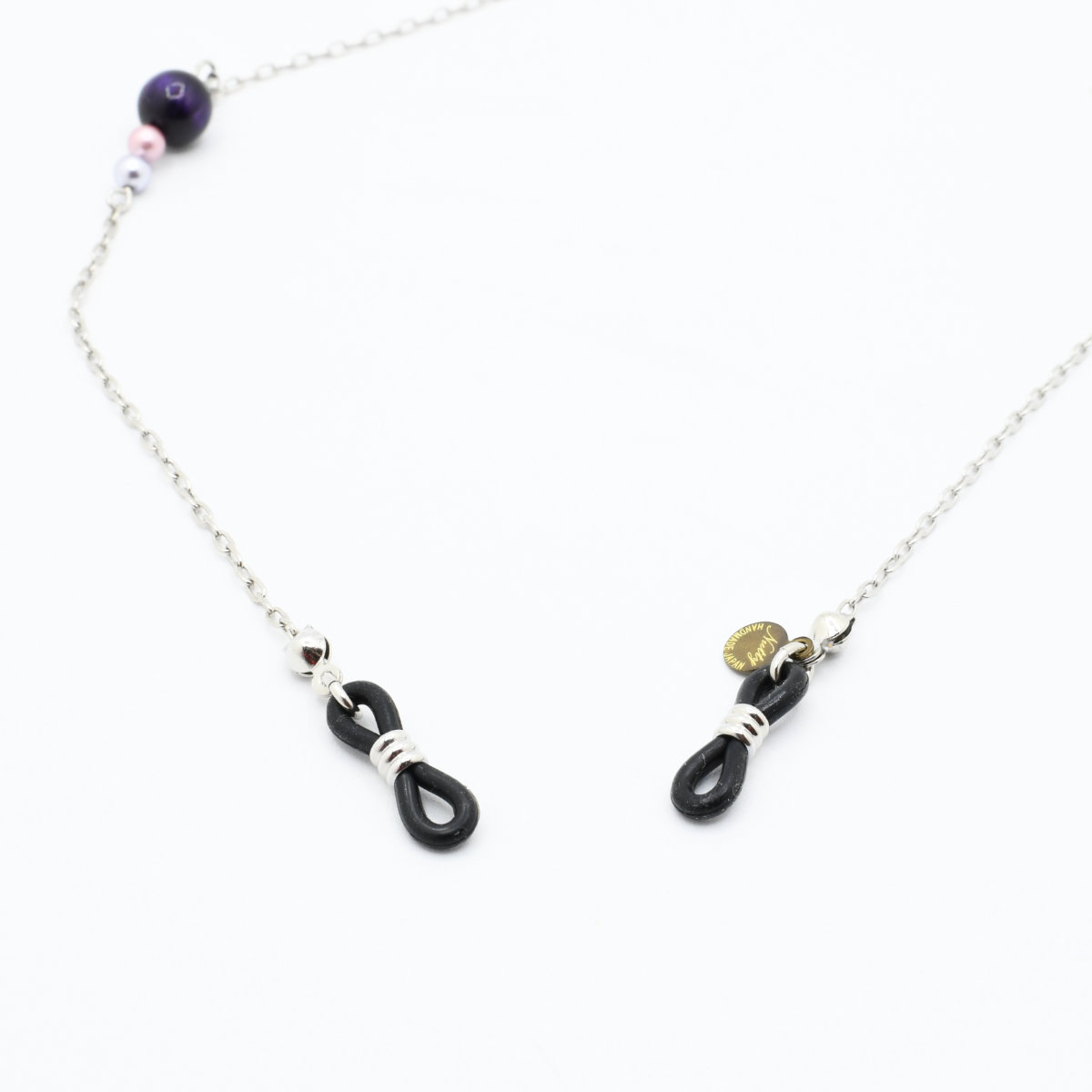 カラータイガーアイ&パールガラス とメタルチェーンのグラスコード